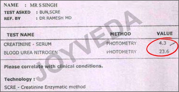 It is a blend of unique herbal formulation which Improve Kidney Function Naturally, gives Relief from High Creatinine, Urea, Swelling, Pain and Weakness..